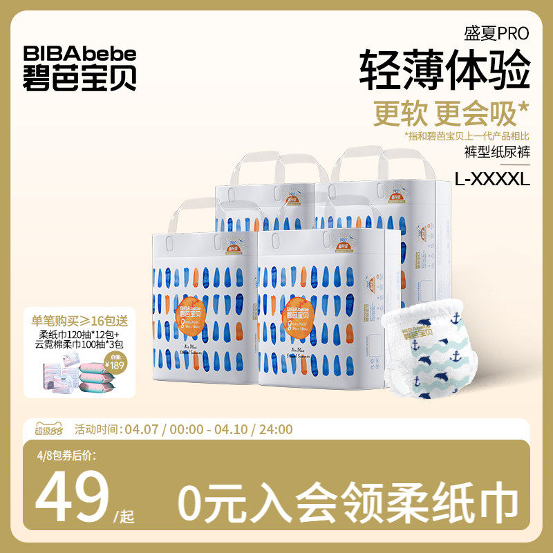 碧芭宝贝盛夏拉拉训练裤婴儿超薄透气尿不湿L-4XL码 4包/组