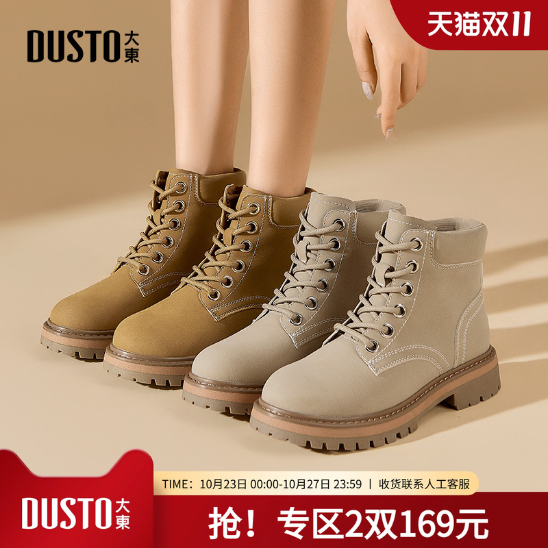 大东马丁靴女鞋2025冬季新款时尚休闲粗跟系带中跟圆头简约D0700
