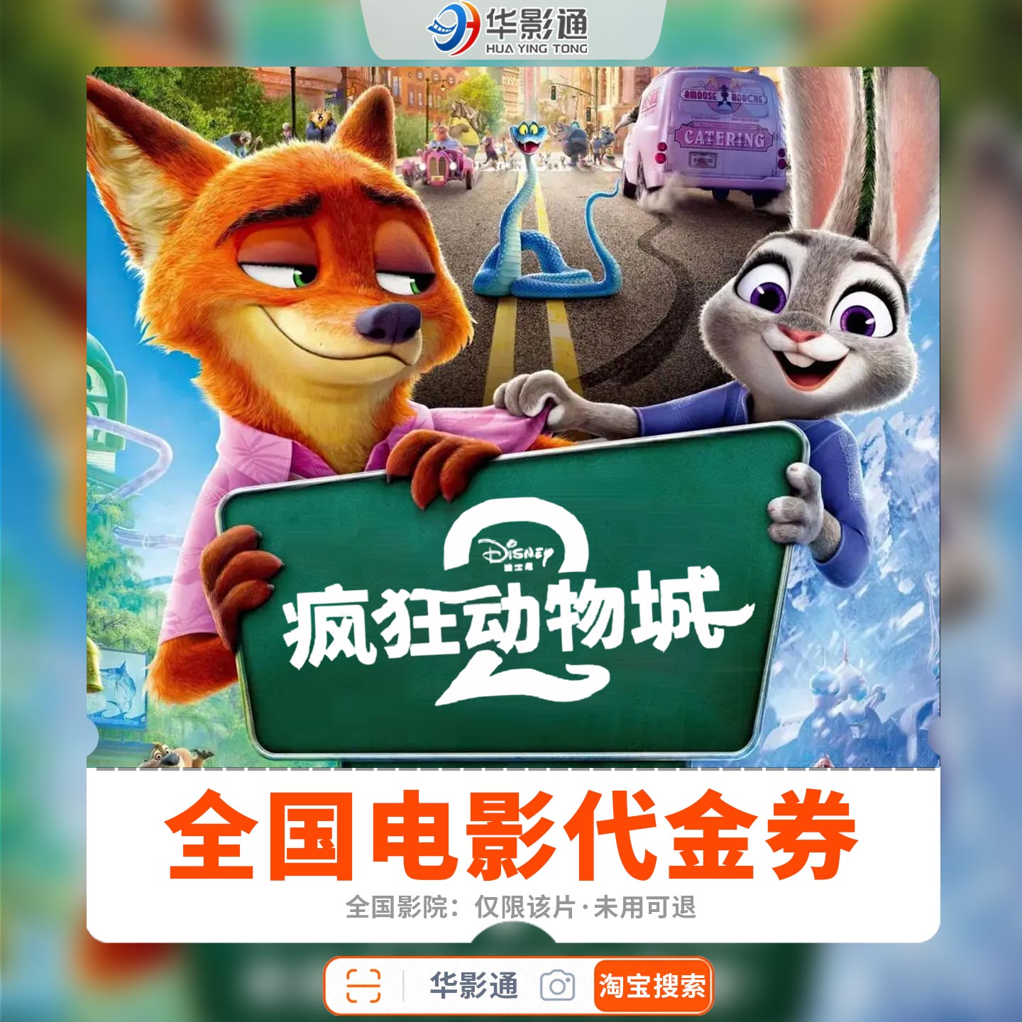 【疯狂动物城2】全国电影票优惠券单人双人电影代金券通用淘票票