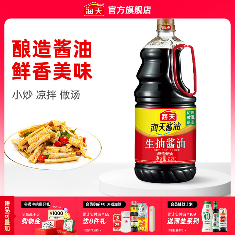 【下拉详情享秒杀补贴】海天生抽酱油2.2kg优选黄豆酿造家用炒菜
