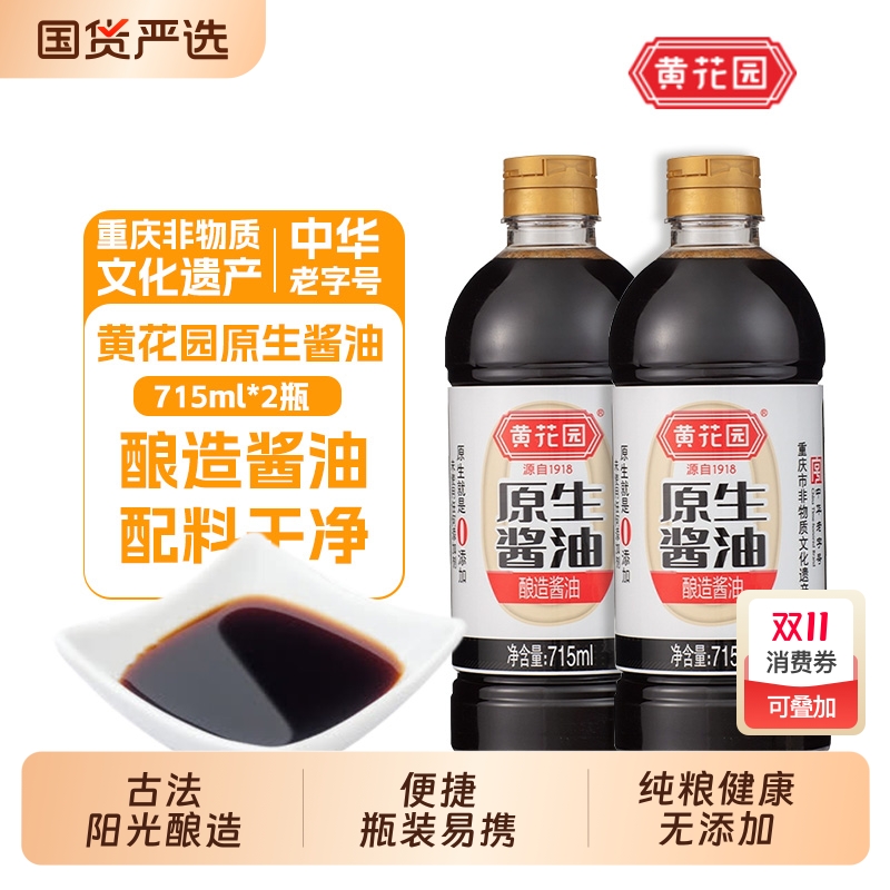 重庆黄花园黄豆酱油715ml酿造传统原生老字号中华零添加古法头道