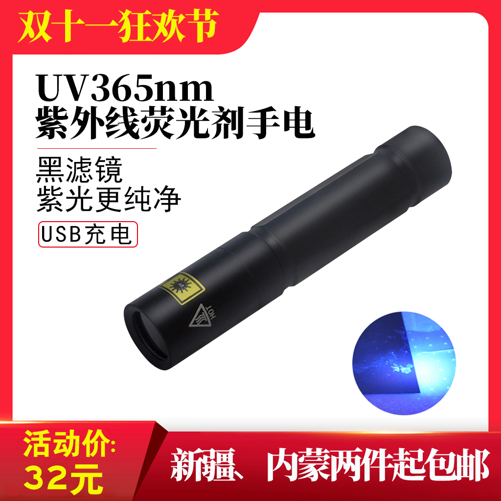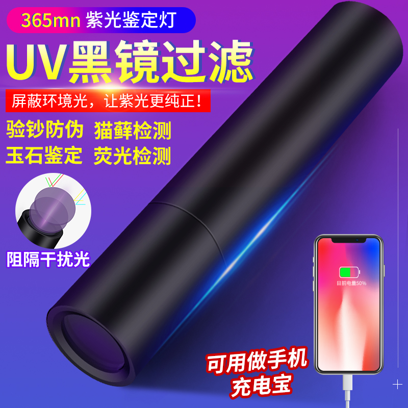 验钞灯可USB充电365nm荧光剂检F测笔紫外线检测面膜护肤品手电筒