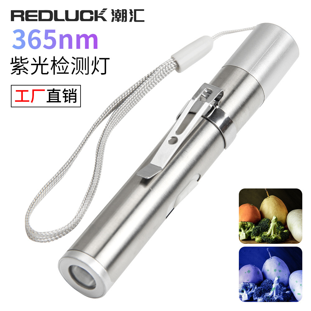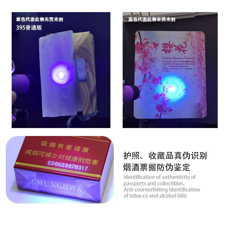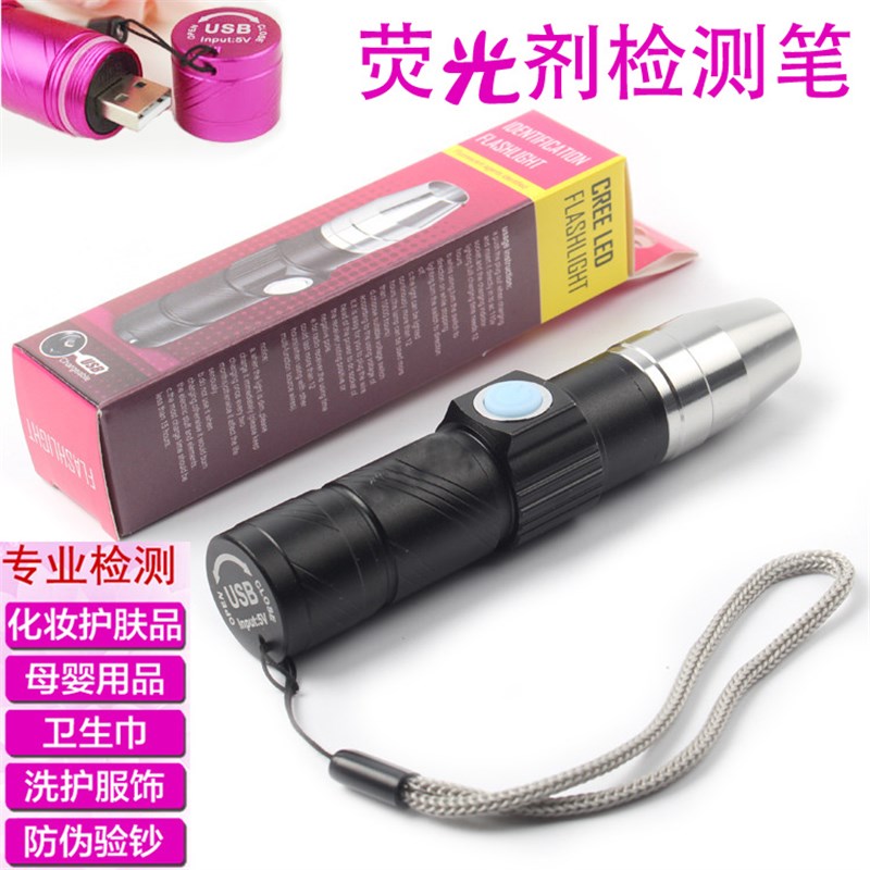 USB可充电荧光剂检测灯365nm手电筒白光验钞灯面膜化妆品测试笔