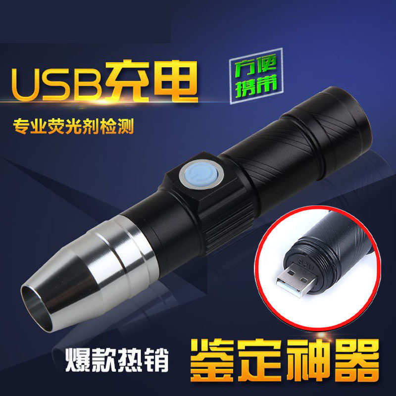 USB充电手电筒荧光剂检测笔防伪码紫光灯莹银验钞紫外线玉石测试
