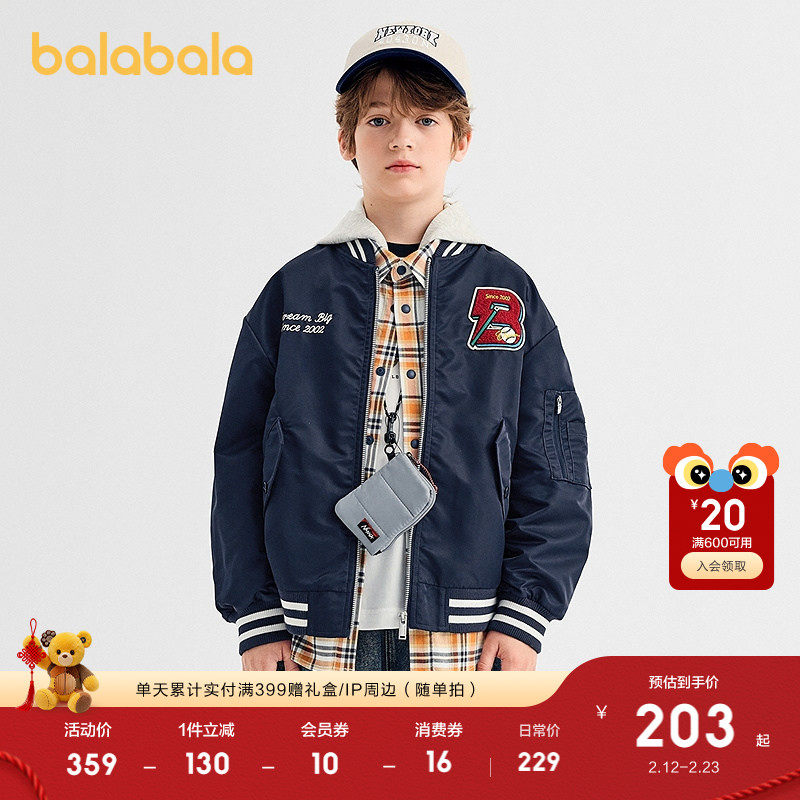 巴拉巴拉童装男童外套儿童上衣2025新款秋装宽松棒球服潮时尚潮酷