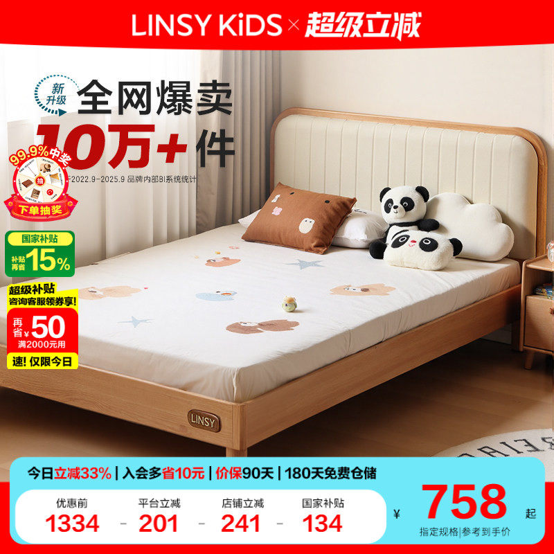 林氏实木儿童床男女孩卧室软包单人双人床1米5蒙氏地台床家具木业