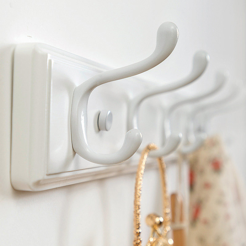 衣服墙上挂衣架挂钩长条墙壁挂入户门口衣帽钩木质木制白色挂衣钩