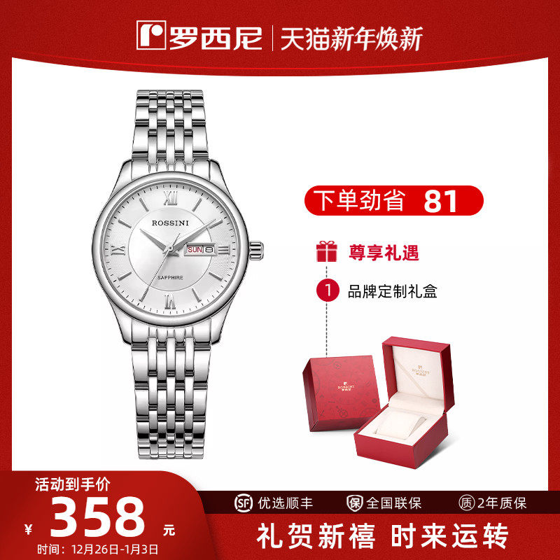 瑞士正品罗西尼手表男女士情侣表全自动机械防水夜光超薄时尚腕表