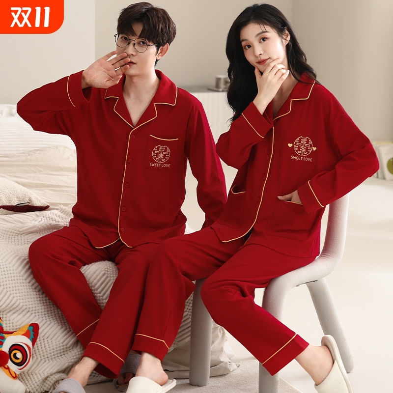 - 情侣睡衣长袖纯棉韩版