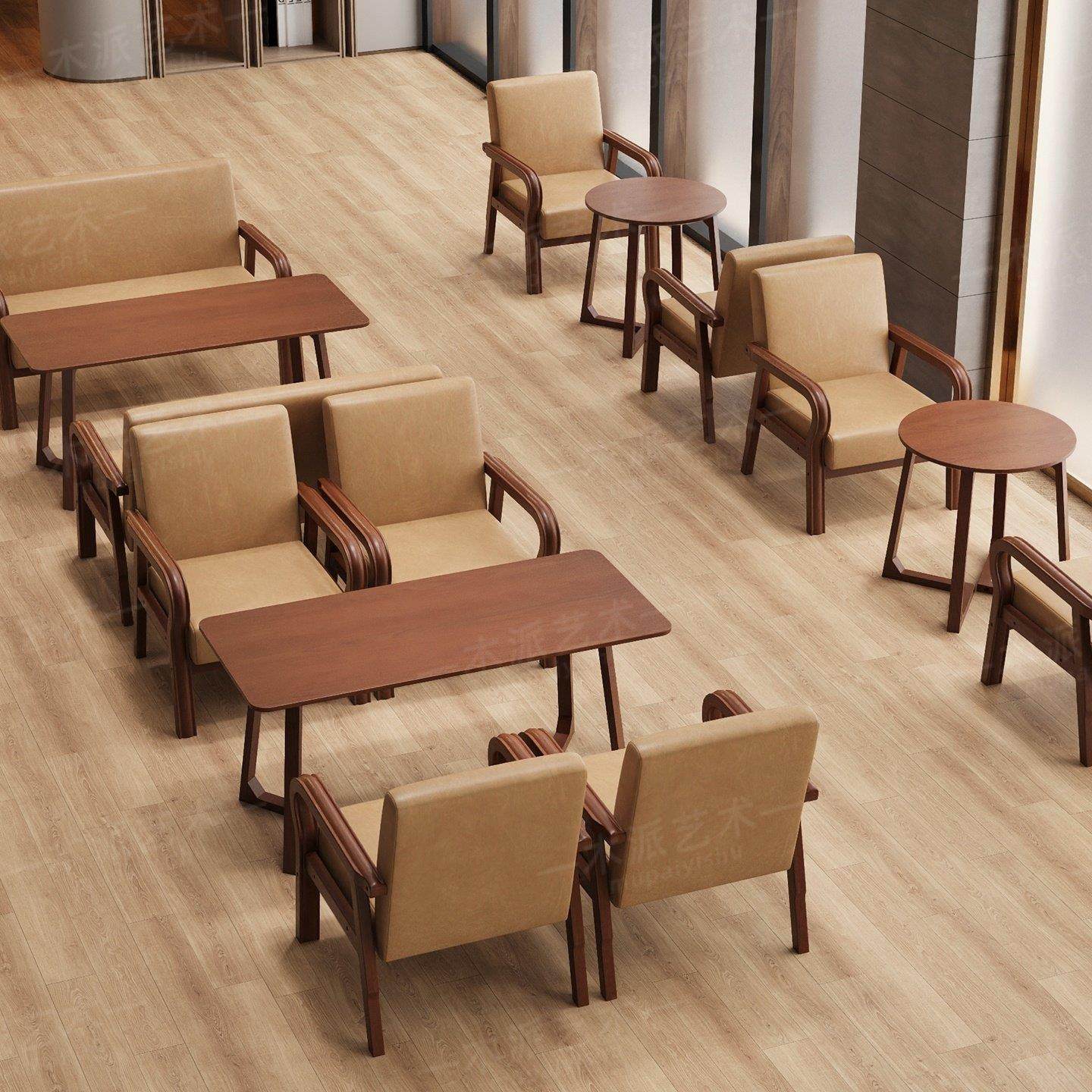 覆古咖啡厅桌椅组合饭厅茶楼酒店民宿接待洽谈实木奶茶店沙发卡座