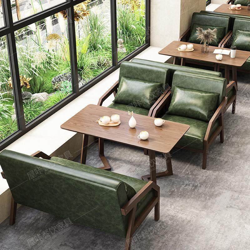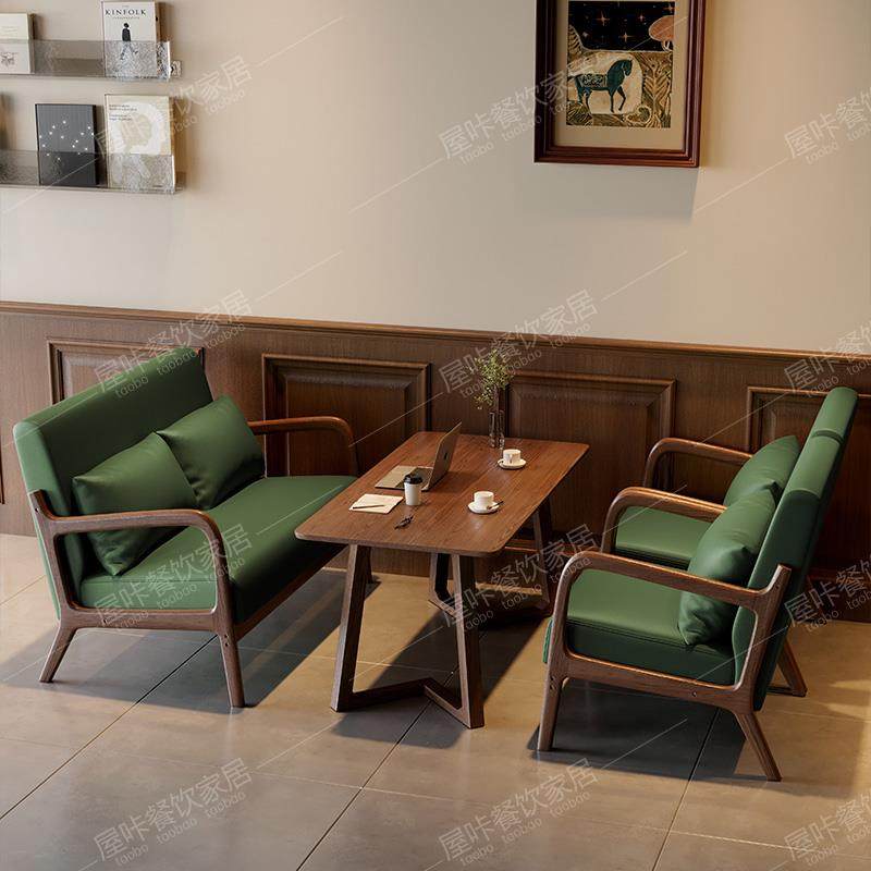覆古咖啡厅桌椅组合清吧饭厅茶楼卡座咖啡店奶茶店沙发椅实木商用