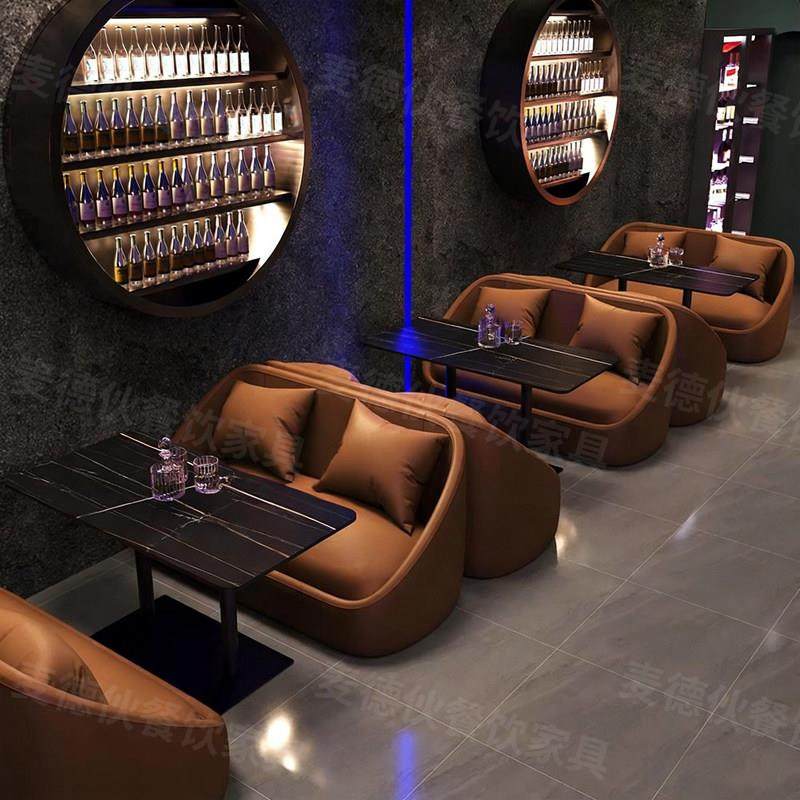 复古酒吧清吧奶茶店咖啡厅桌椅组合餐厅卡座沙发洽谈酒馆商用休闲