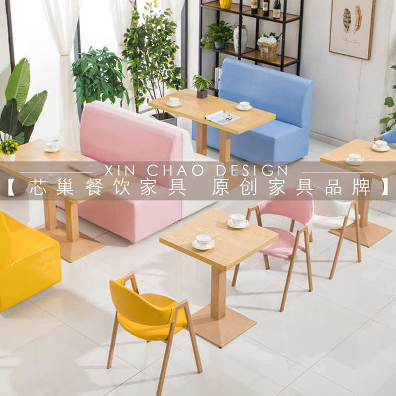 速发奶茶店沙发桌椅店合简约清新西堡厅家具小吃甜品店汉餐组卡座