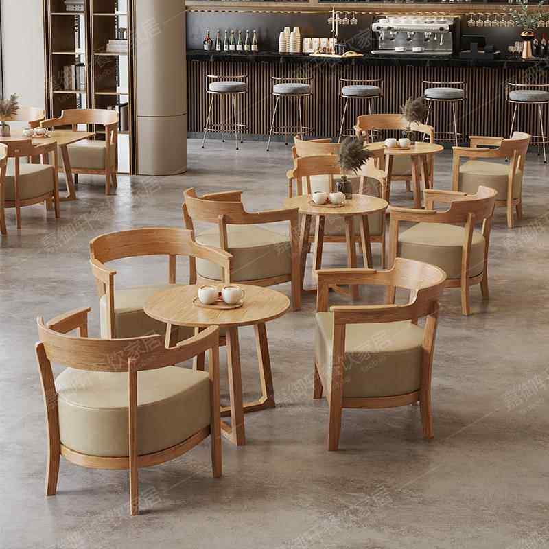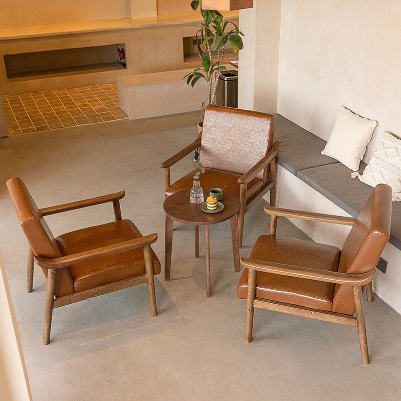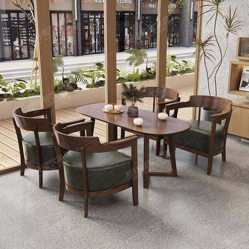 覆古咖啡厅实木桌椅组合民宿酒店奶茶店沙发洽谈会客接待休闲 商