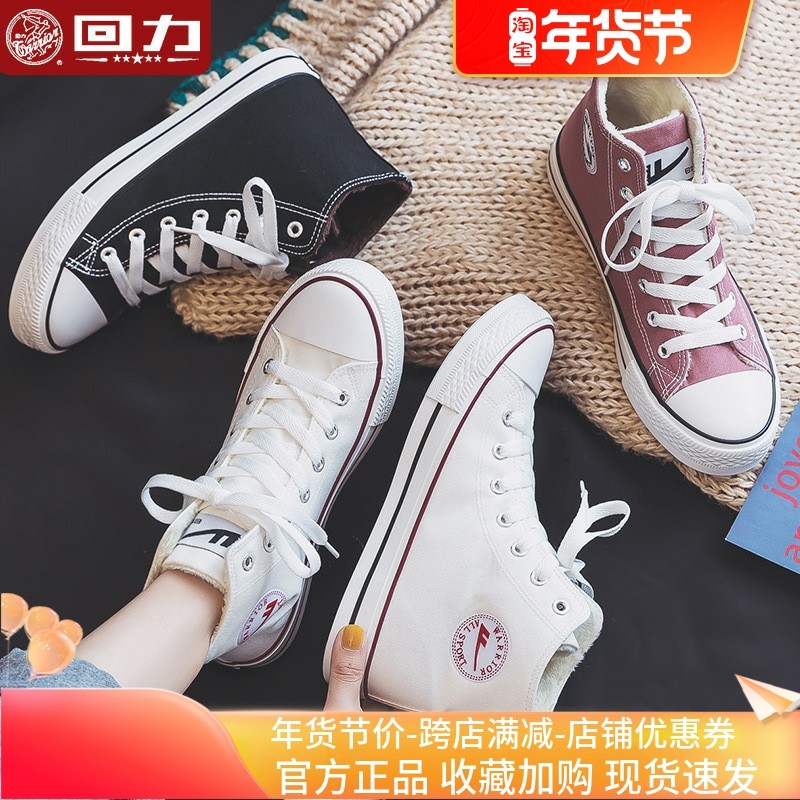 回力女鞋内增高帆布鞋男高帮秋冬季加绒二棉鞋2026新款厚底板鞋子