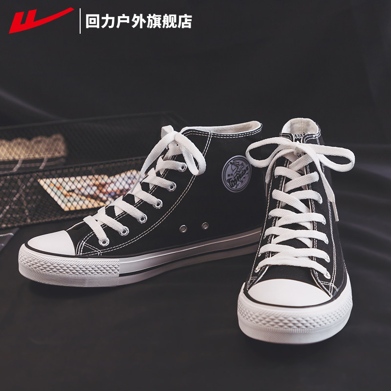 回力帆布鞋男高帮男鞋冬季运动鞋潮黑色休闲百搭鞋子情侣款布鞋子