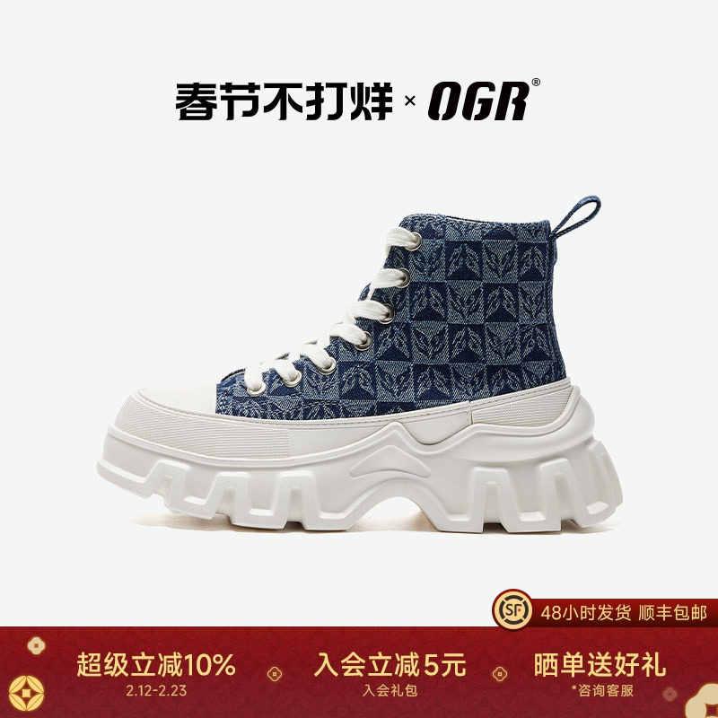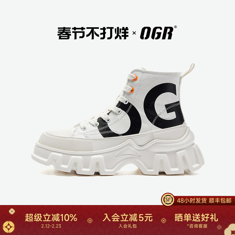 【刘宇同款】OGR屾系列2.0帆布鞋男高帮印花休闲鞋新厚底增高女