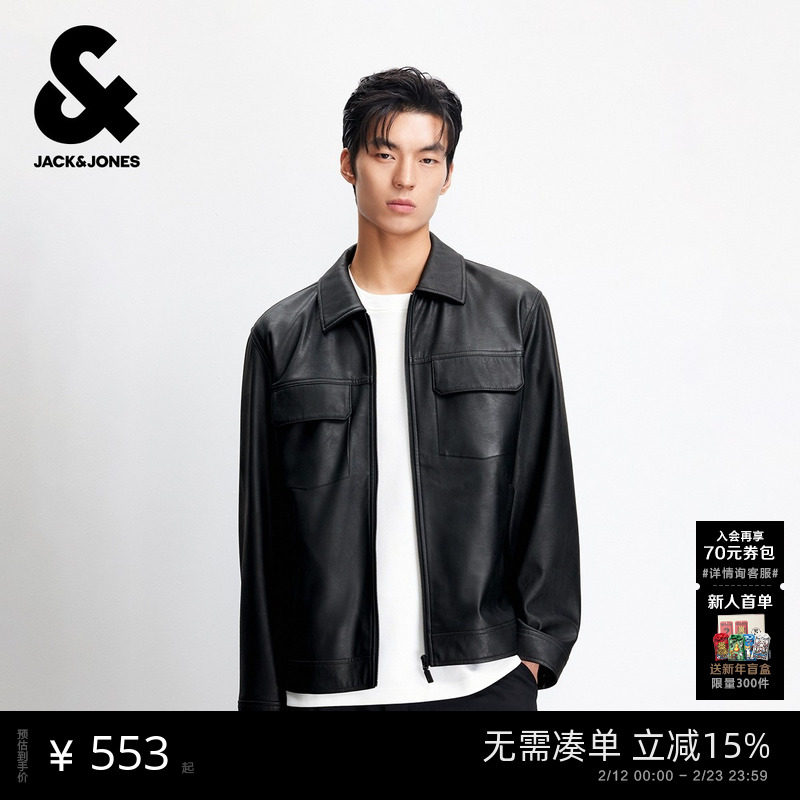 - 皮衣男 真皮 翻领 外套