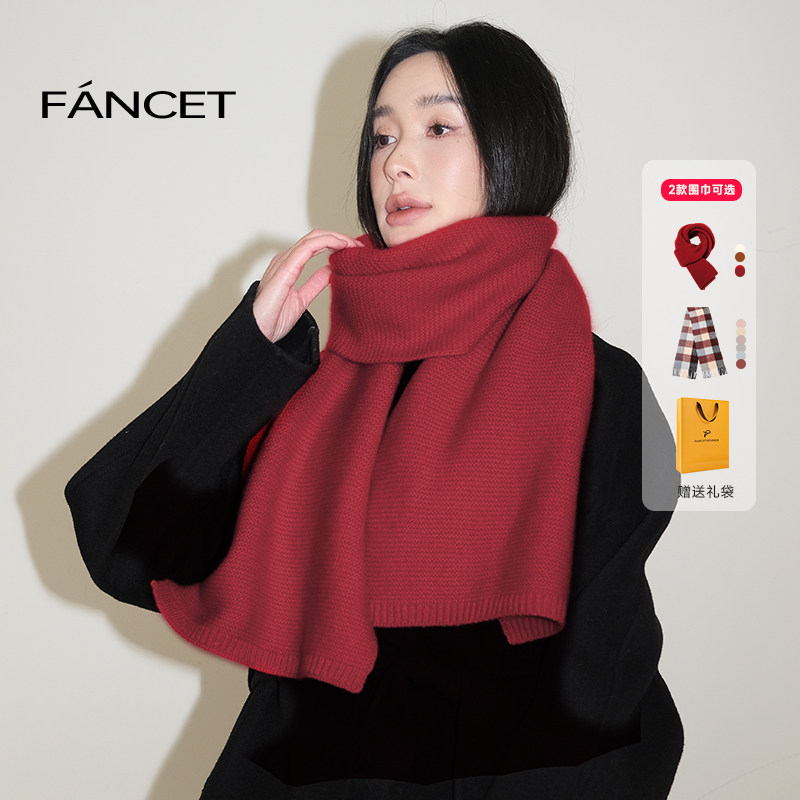 FANCET纯羊毛围巾女秋冬加厚保暖百搭高级感纯色针织围脖礼物披肩