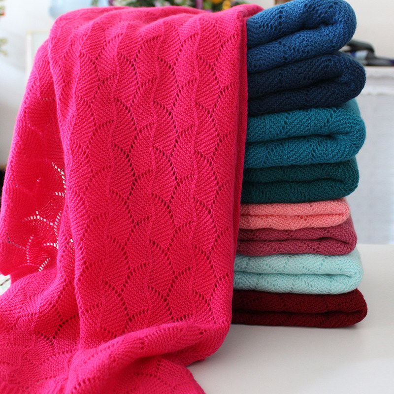 羊绒围巾女大披肩100围脖钩花秋冬加厚高端纯色针织镂空玫红长款