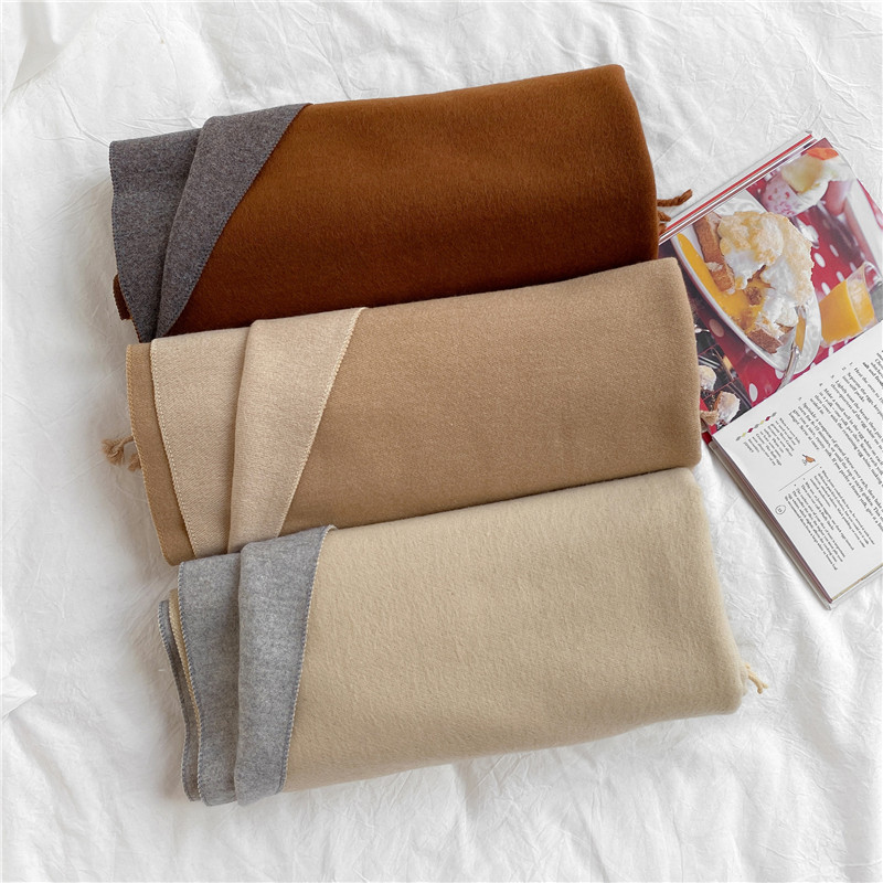 纯色仿羊绒围巾女春秋冬季韩版新款百搭驼色流苏保暖加厚围脖披肩
