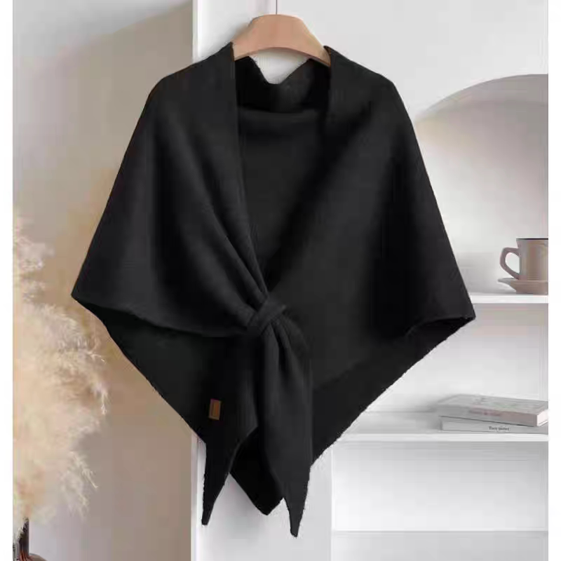 2025秋冬新款羊毛混纺纯色三角大披肩女保暖加厚外搭针织围脖搭肩