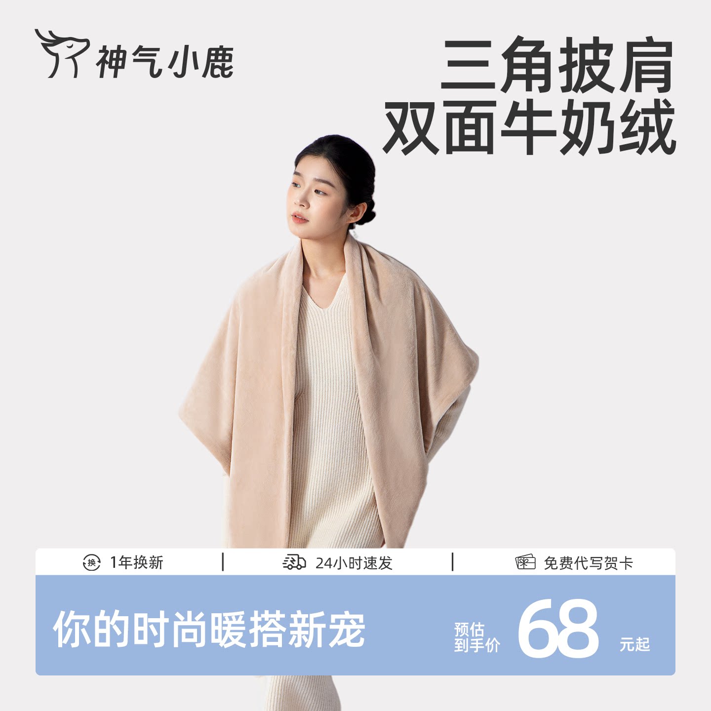 神气小鹿牛奶绒披肩三角巾秋冬加厚护颈纯色百搭围巾披风午睡盖毯