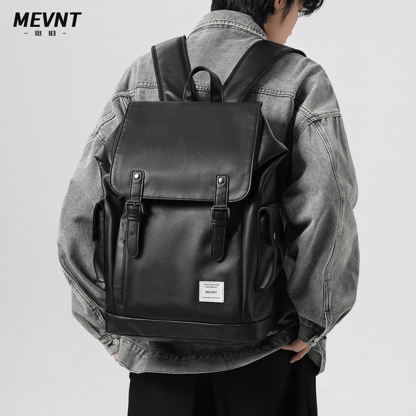 觅旧studio 皮书包男中学生ins潮酷初中高中大学生双肩包潮牌背包