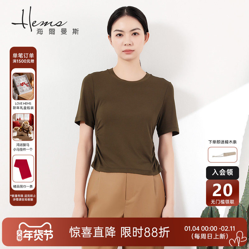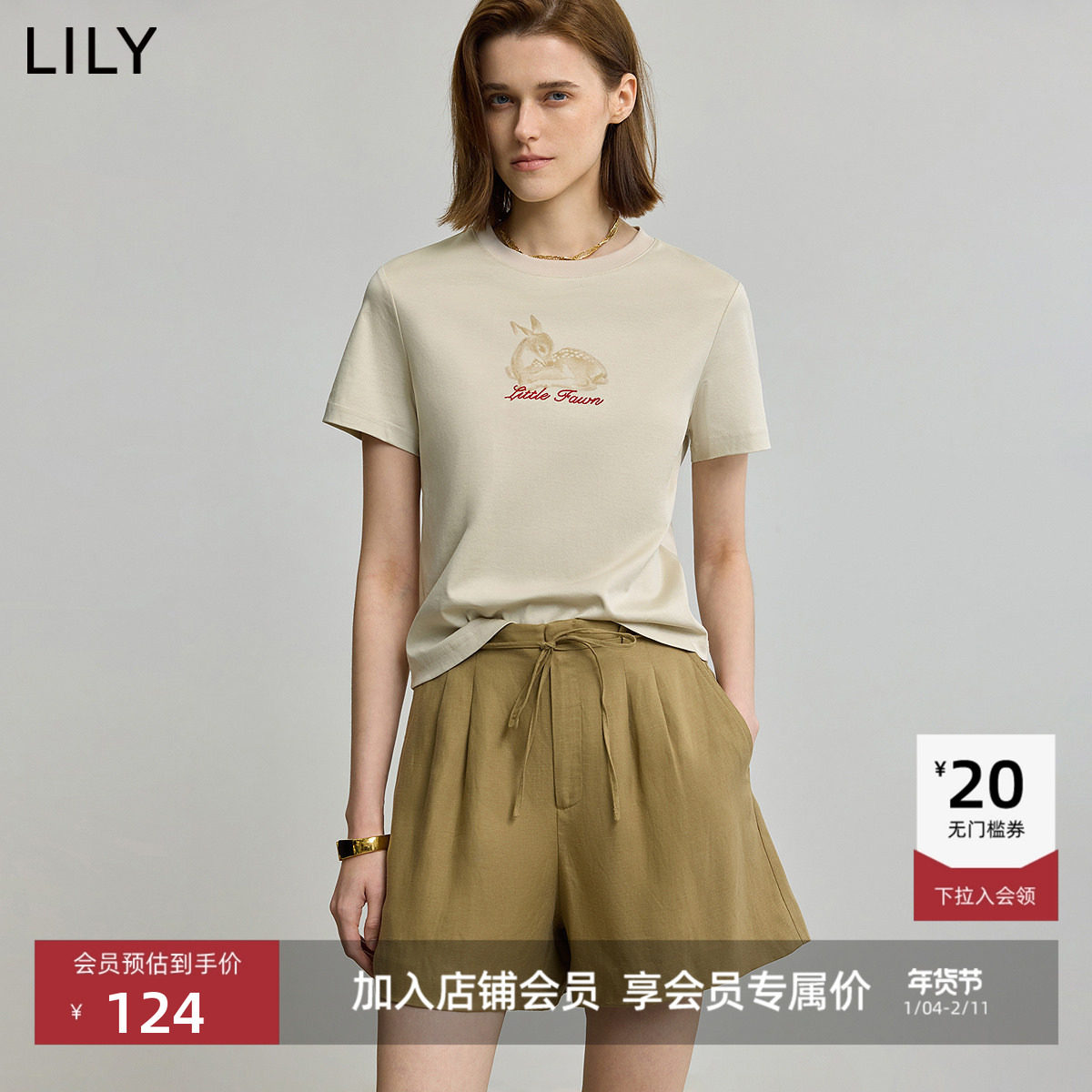 【商场同款】LILY2025秋新款莱赛尔桑蚕丝混纺宽松休闲短袖T恤女
