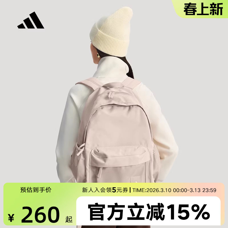 adidas阿迪达斯实用通勤运动双肩背包2026春女粉休闲书包 KR5118