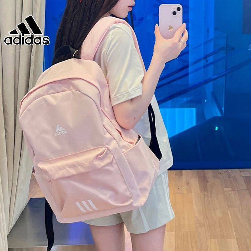 正品阿迪达斯书包女双肩包学生女生2025新款旅行包男帆布少女粉色