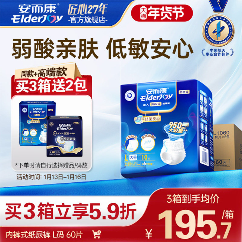 安而康成人舒柔拉拉裤内裤型纸尿裤老年人老人用尿不湿安尔康L码