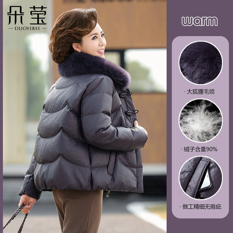 小个子妈妈冬装短款免洗皮羽绒服冬季新款中老年女装保暖加厚外套