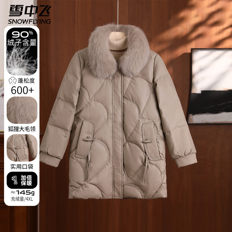 雪中飞2025新款羽绒服女中年妈妈冬季防寒冬装中老年中长款皮外套