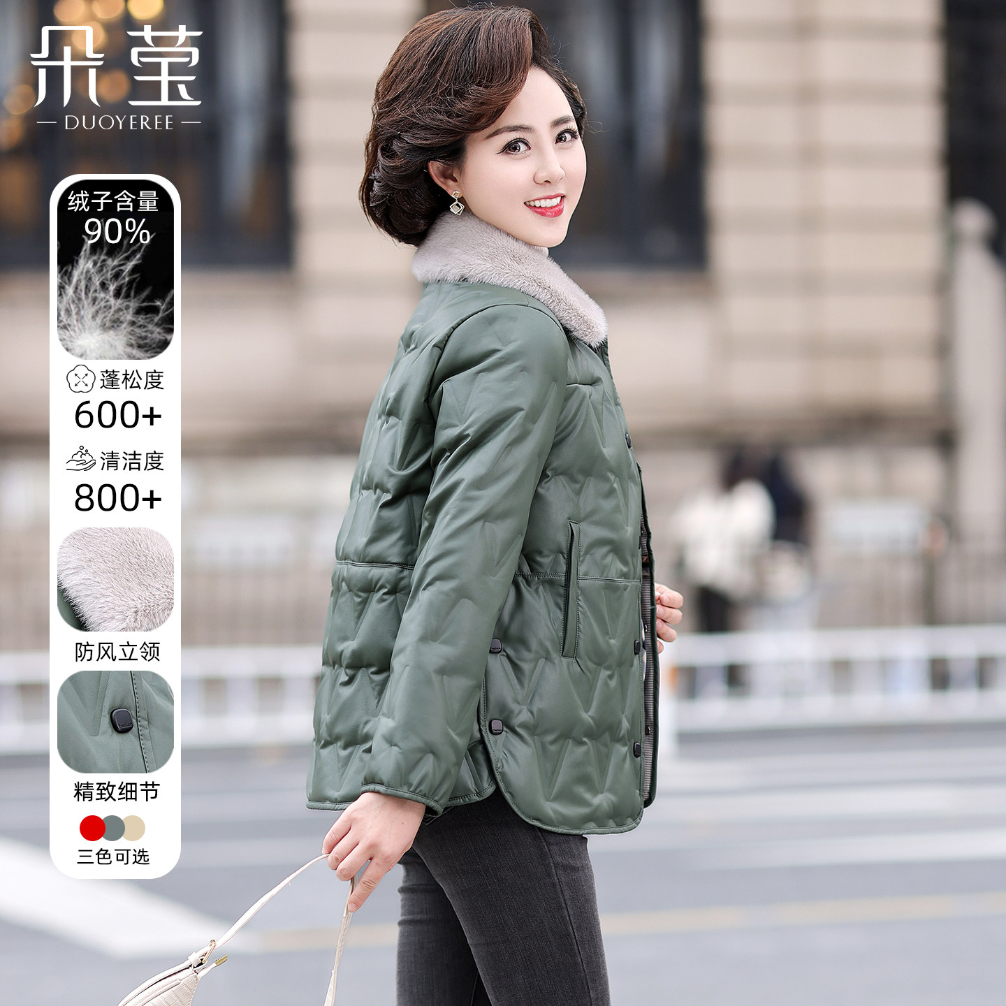洋气中老年妈妈冬装免洗皮保暖羽绒服中年女装小个子短款防寒外套