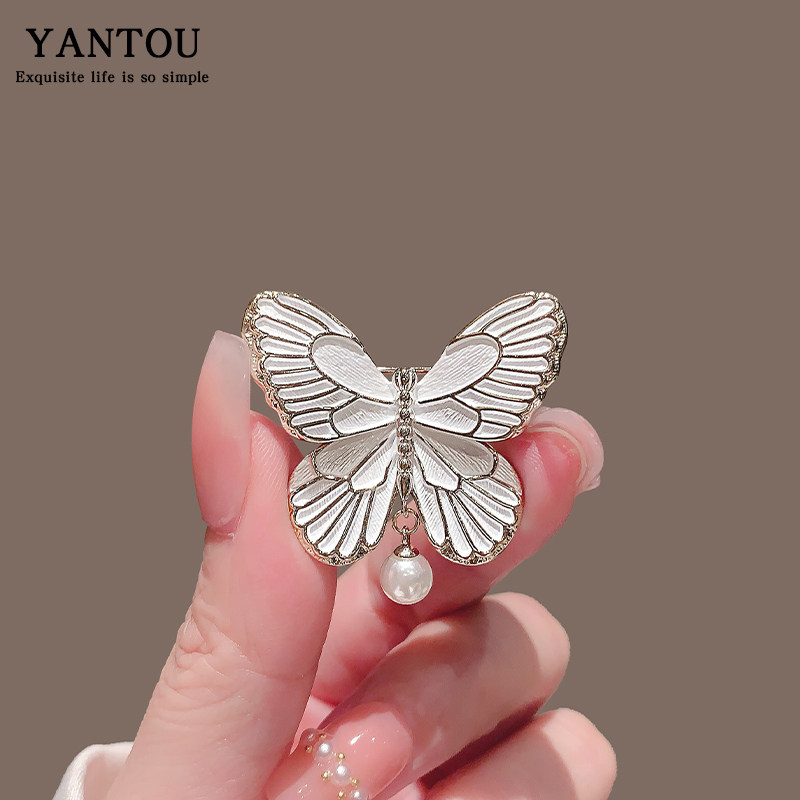 新款时尚蝴蝶珍珠胸针女高档胸花别针奢华设计感小众西装配饰胸章