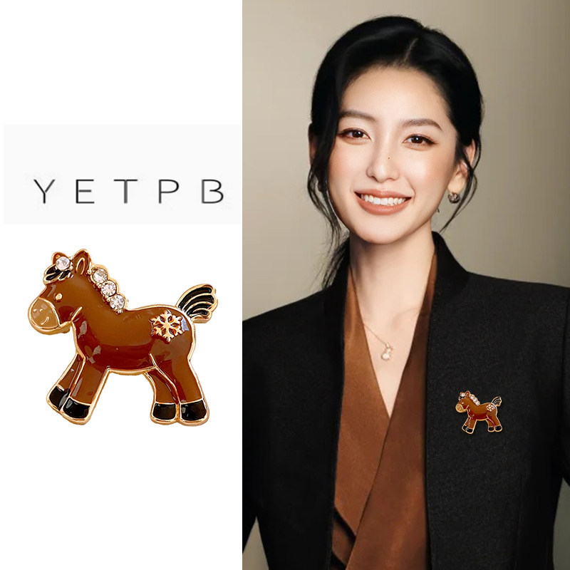 轻奢水钻小马胸针男女高档气质马年别针精致胸花大衣配饰新年礼物