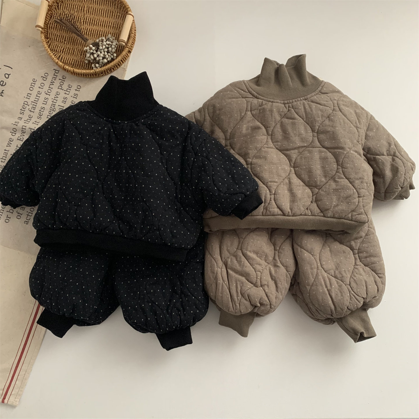 淘气小妞男童套装冬装新款韩系儿童女童宝宝夹棉棉袄棉裤保暖两件