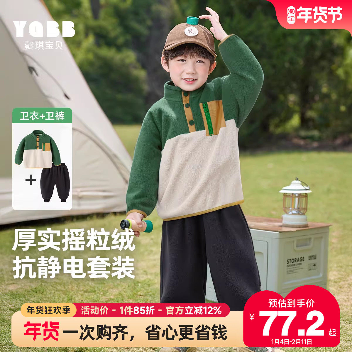 [抗菌远红外]冬季男童套装宝宝秋冬摇粒绒小童新款衣服儿童两件套