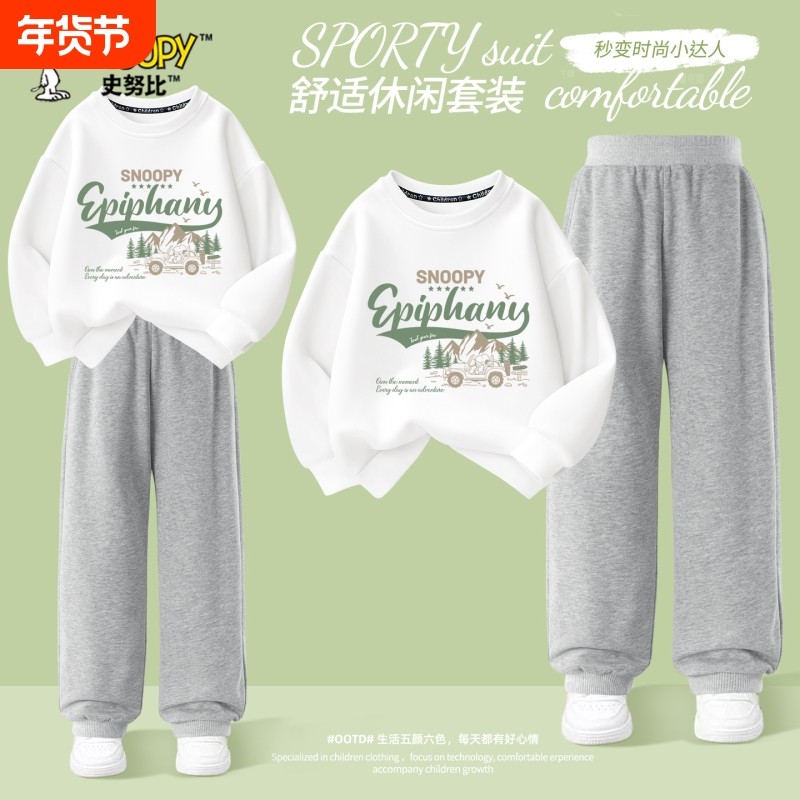 史努比童装男童套装2025新款秋季卫衣两件套帅气宽松中大童衣服潮
