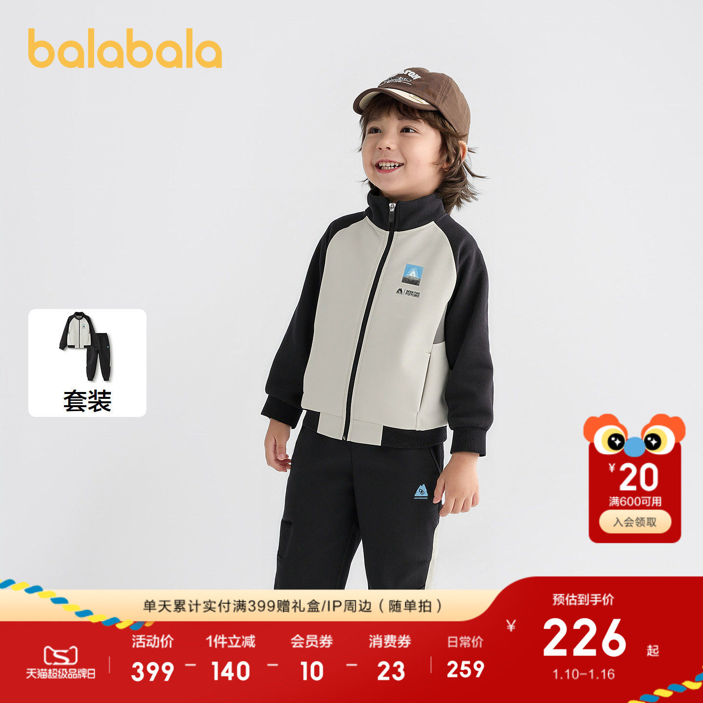 【balaOne】巴拉巴拉童装儿童套装男童2025新款春秋装棒球服新年