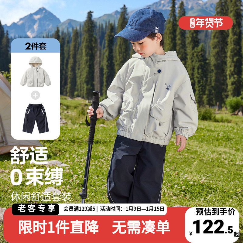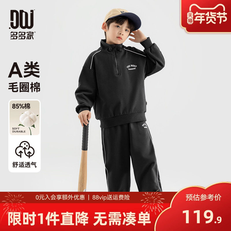 真维斯童装男童套装冬季2026新款儿童加绒运动两件套男孩保暖卫衣
