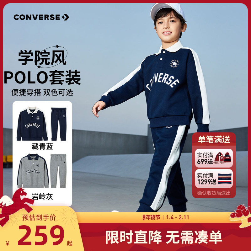 安踏儿童装男童套装秋装2025新款纯棉长袖长裤时尚两件套装学院风