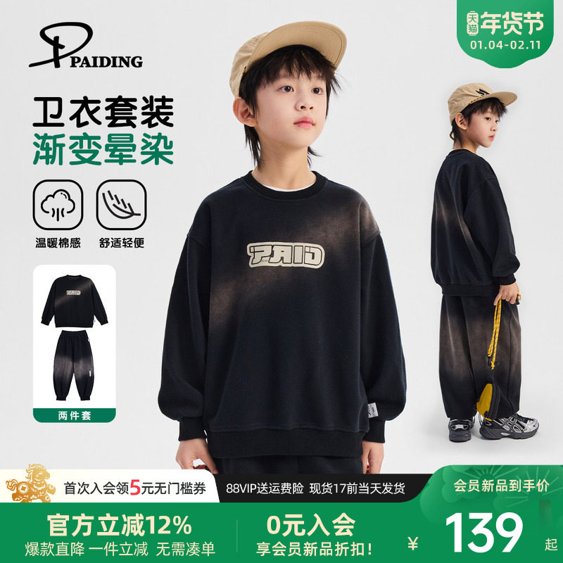 班尼路YBB系列男童套装秋冬款儿童加绒卫衣卫裤2025新款男孩冬装