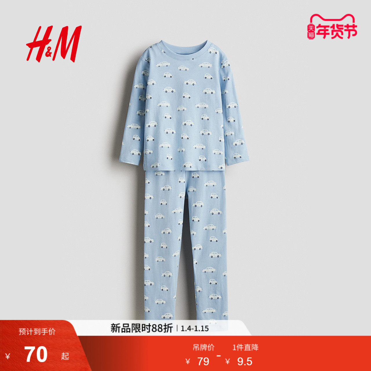 HM童装男童套装2件式冬季印花卫衣圆领卫衣运动长裤1311046