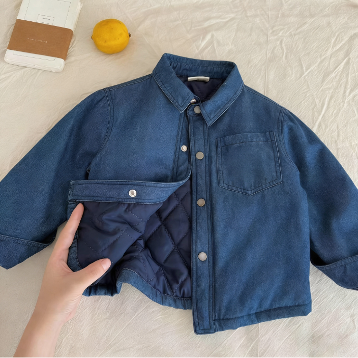 儿童夹棉衬衫2025冬款小童小熊衬衣男童加棉衣宝宝棉服外套女加厚