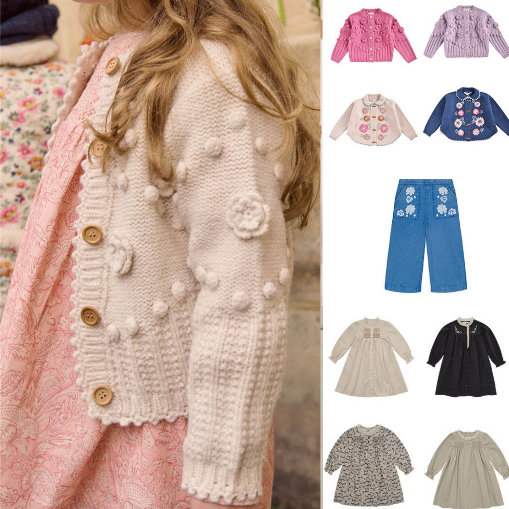 2025秋冬款LOU童装女孩粉色毛衣LM白衬衫开衫法式连衣裙气质套装