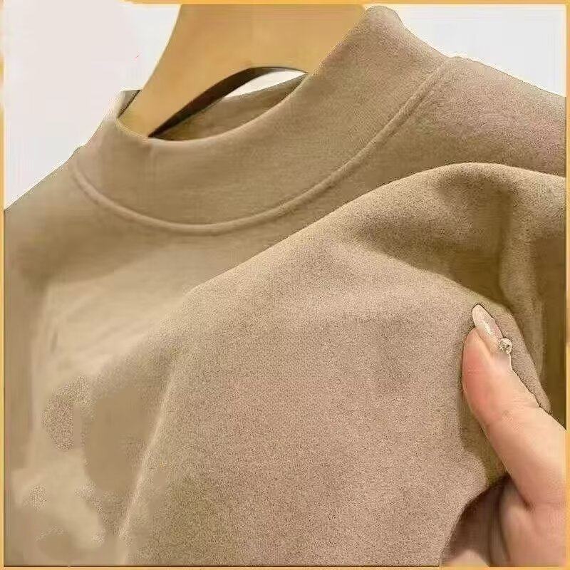 半高领打底衫女百搭肌底衣磨毛保暖修身上衣秋冬款内搭长袖T恤衫