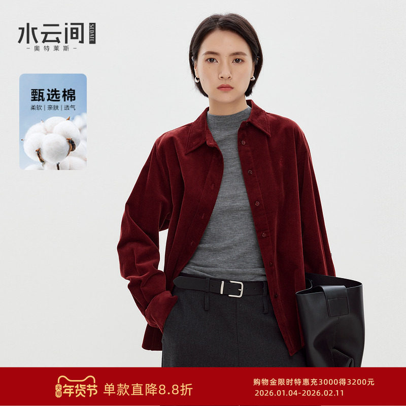 水云间复古红色灯芯绒衬衫外套女纯棉长袖衬衣宽松上衣2025秋冬款