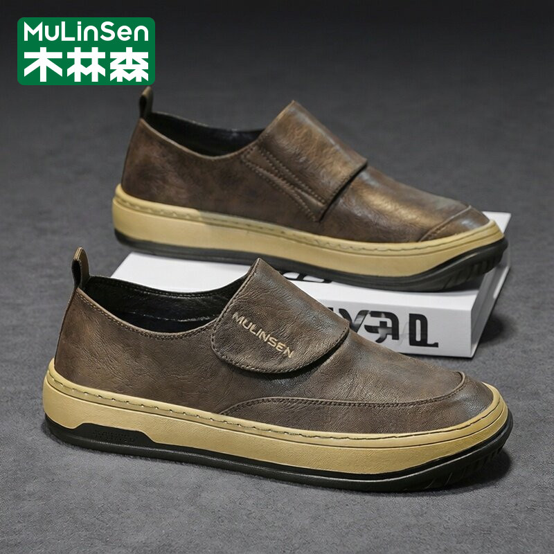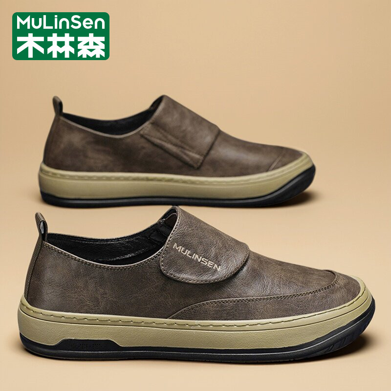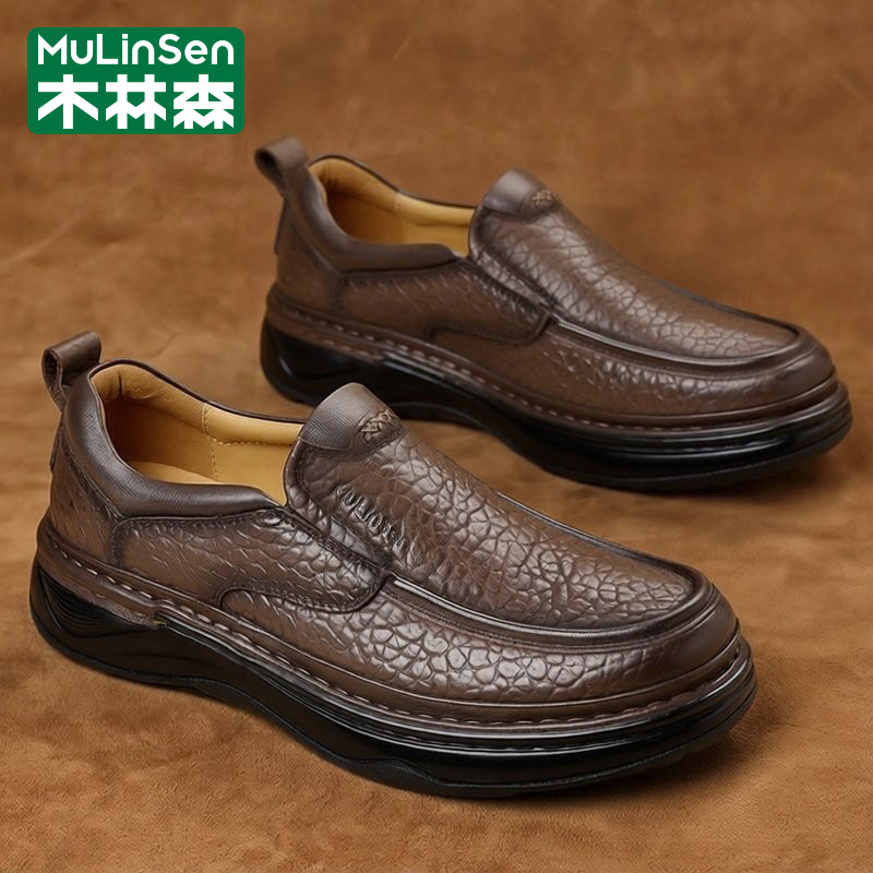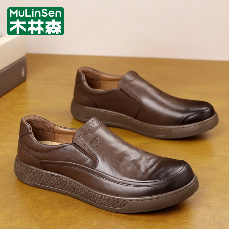 木林森皮鞋男春季2026新款商务休闲头层牛皮爸爸工作上班驾车板鞋